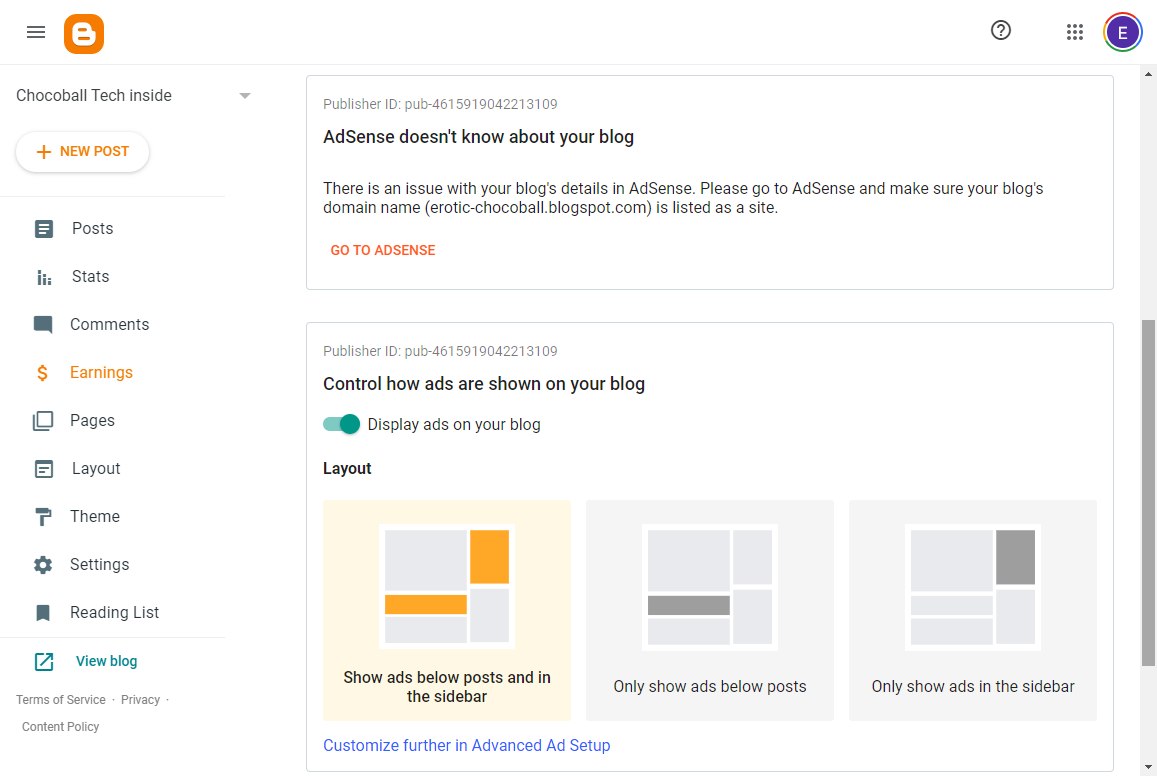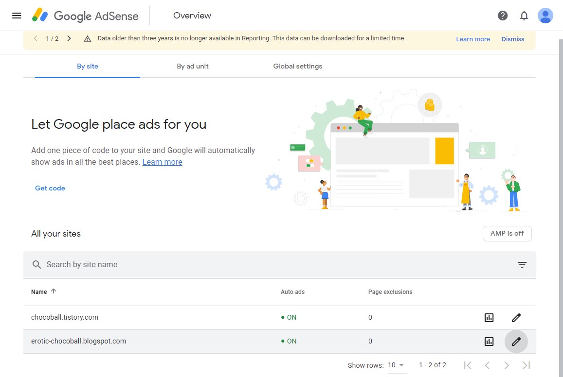 사이트에 가서 광고 노출에 대한 설정을 하라고 안내해 줍니다.