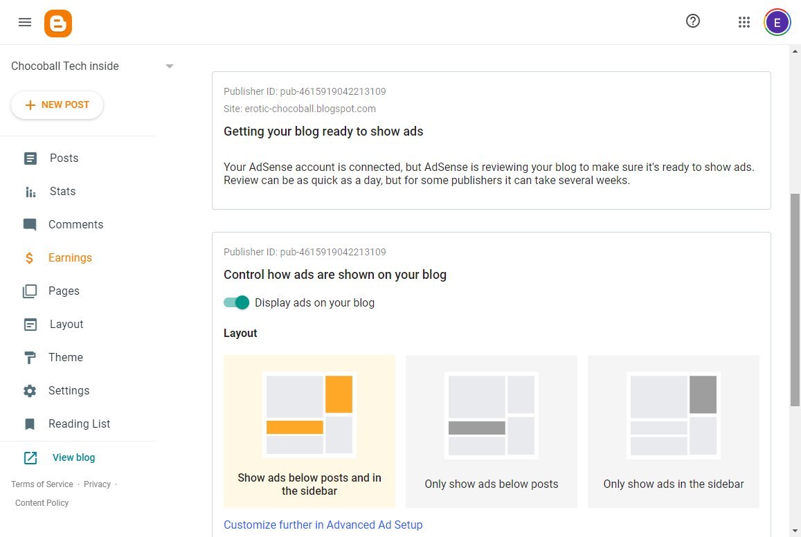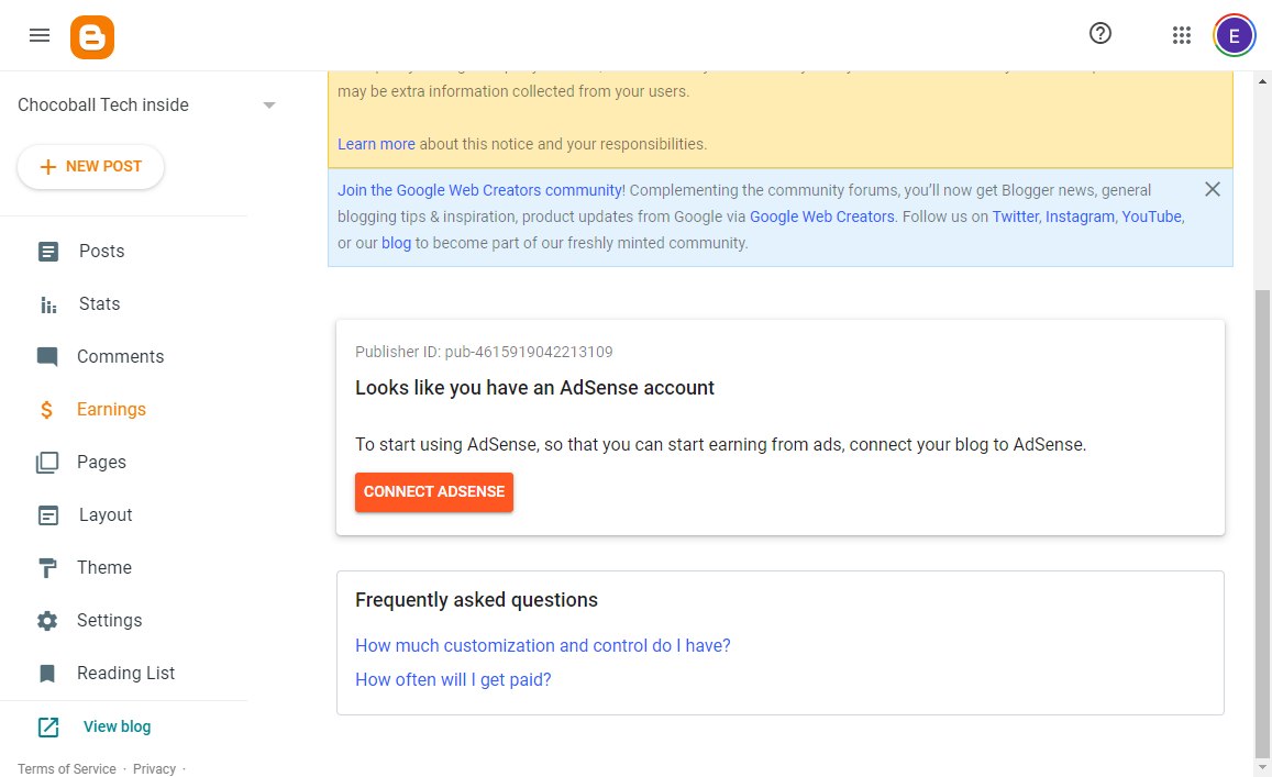 Google Adsense 수익을 낼 수 있도록 연동합니다.