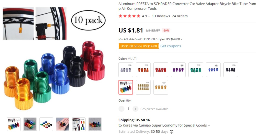 - 2021.02.09 Life | 자전거 타이어 주입구 Presta 를 Schrader 로 변환