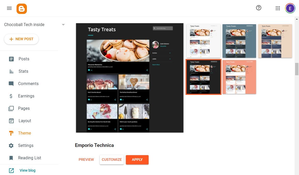 블로그의 분위기를 잡는 테마를 선택합니다.